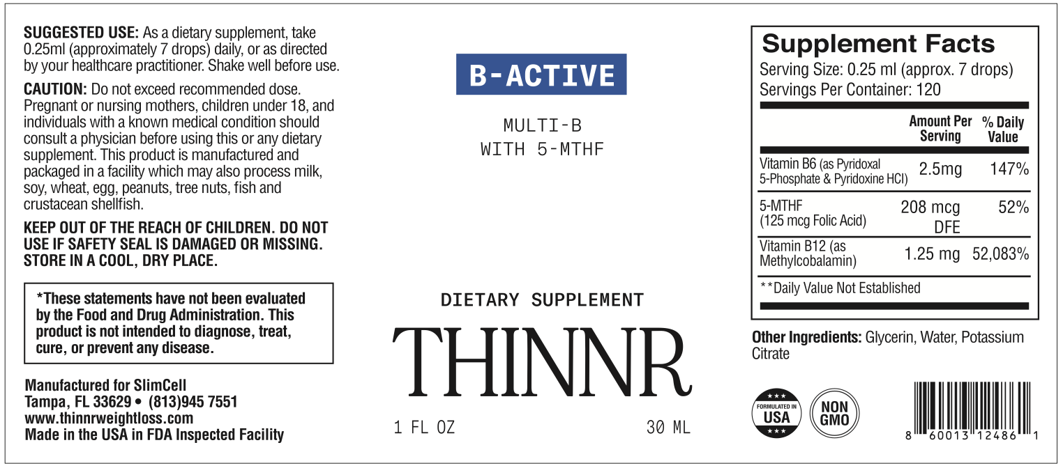 Thinnr B-Active is an advanced B-complex formula with bioactive forms of B-vitamins, including methylcobalamin (B12), 5-MTHF (folate), and two forms of B6, to help support overall wellness. B-vitamins play key roles in helping maintain normal energy metabolism and nerve function, and support healthy cardiovascular wellness by contributing to normal homocysteine metabolism.*